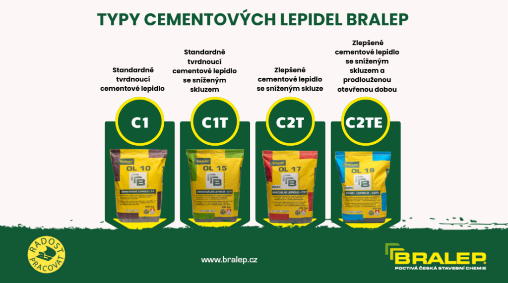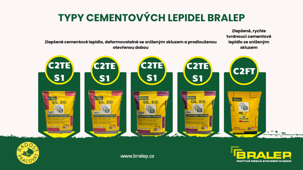 Cementová lepidla Bralep přehledně podle značení normy