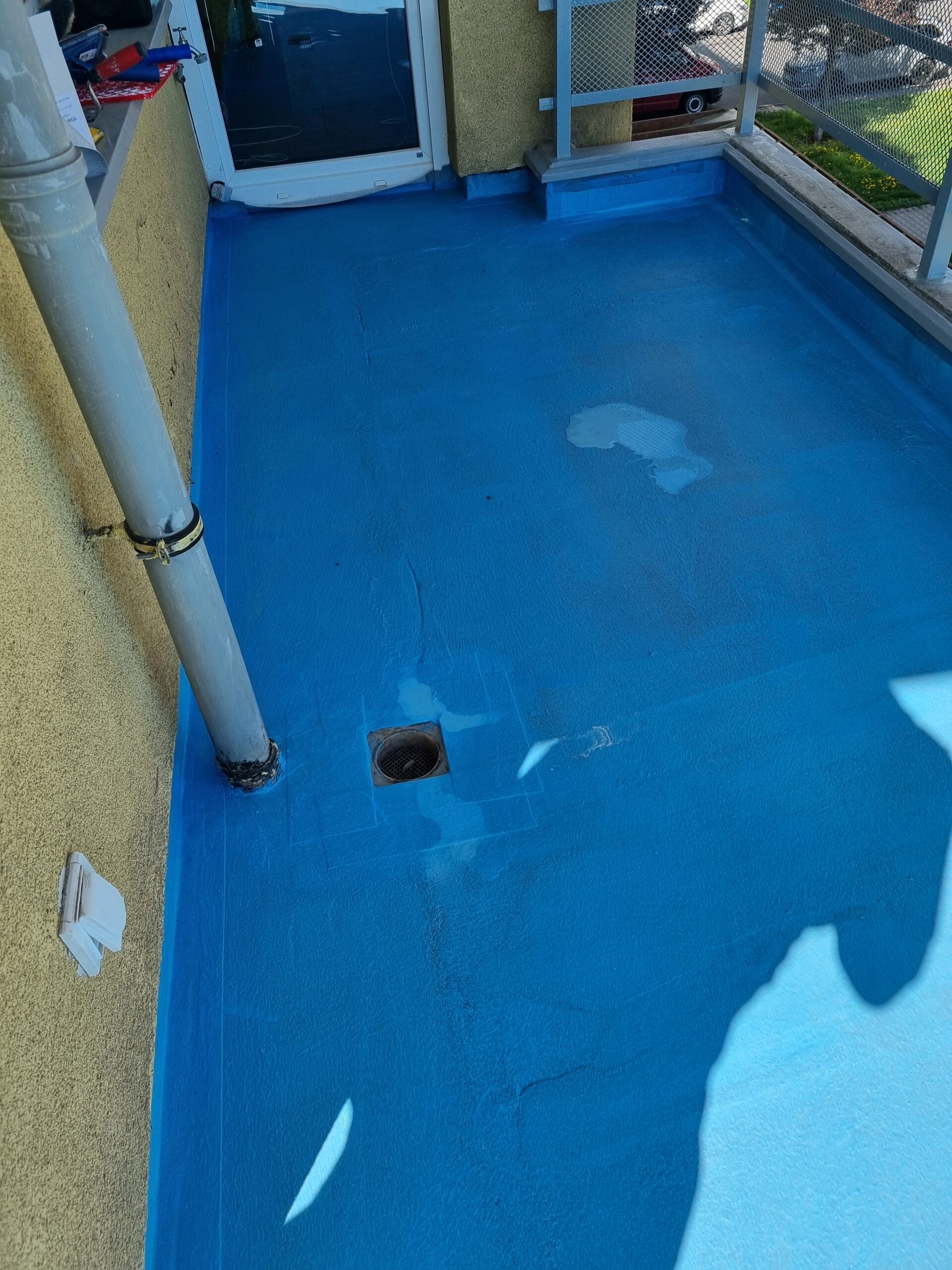 Na hydroizola je možné použít dvousložkovou hydroizolaci BRALEP HI 2K určenou k vodotěsné izolaci balkónů, teras, suterénů atd. HI 2K nanášíme vždy ve dvou vrstvách. První vrstvu aplikujeme v tloušťce 1-2 mm pomocí štětce nebo válečku, druhou vrstvu nanášíme ocelovým hladítkem. Maximální tloušťka všech vrstev hydroizolace je 4 mm. V rozích terasy izolujeme pomocí těsnícího pásu a těsnících rohů. Hydroizolaci necháme cca 48 hodin vyzrát.